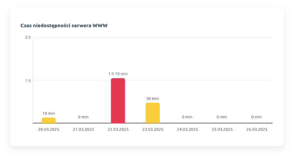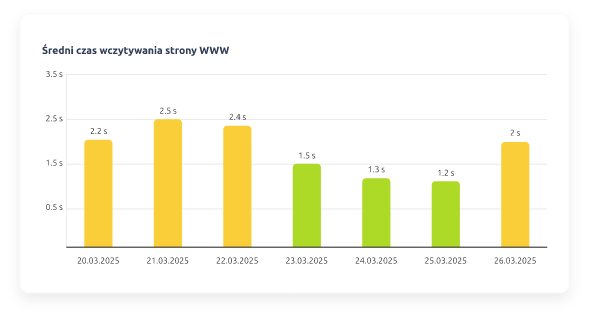 Monitoring WWW regularnie sprawdza, jak szybko działa wybrana strona WWW. Każdy pomiar jest zapisywany w historii, którą możesz przeglądać online. Archiwum wyników ułatwia wychwycenie momentów, w których strona działała wolniej. To istotne, bo użytkownicy chętniej korzystają z witryn, które ładują się bez opóźnień.